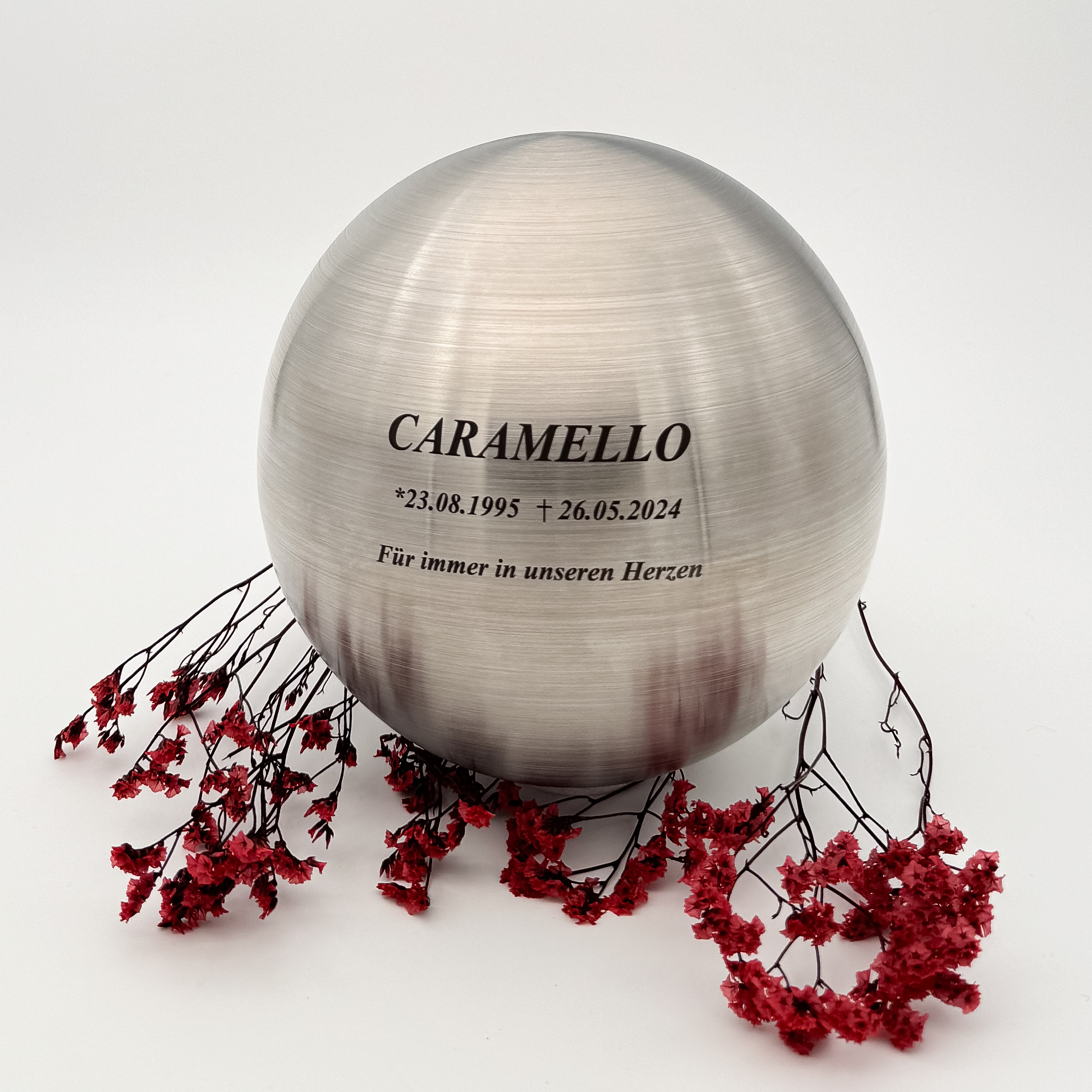 Metallurne in Kugelform mit gebürsteter Oberfläche,